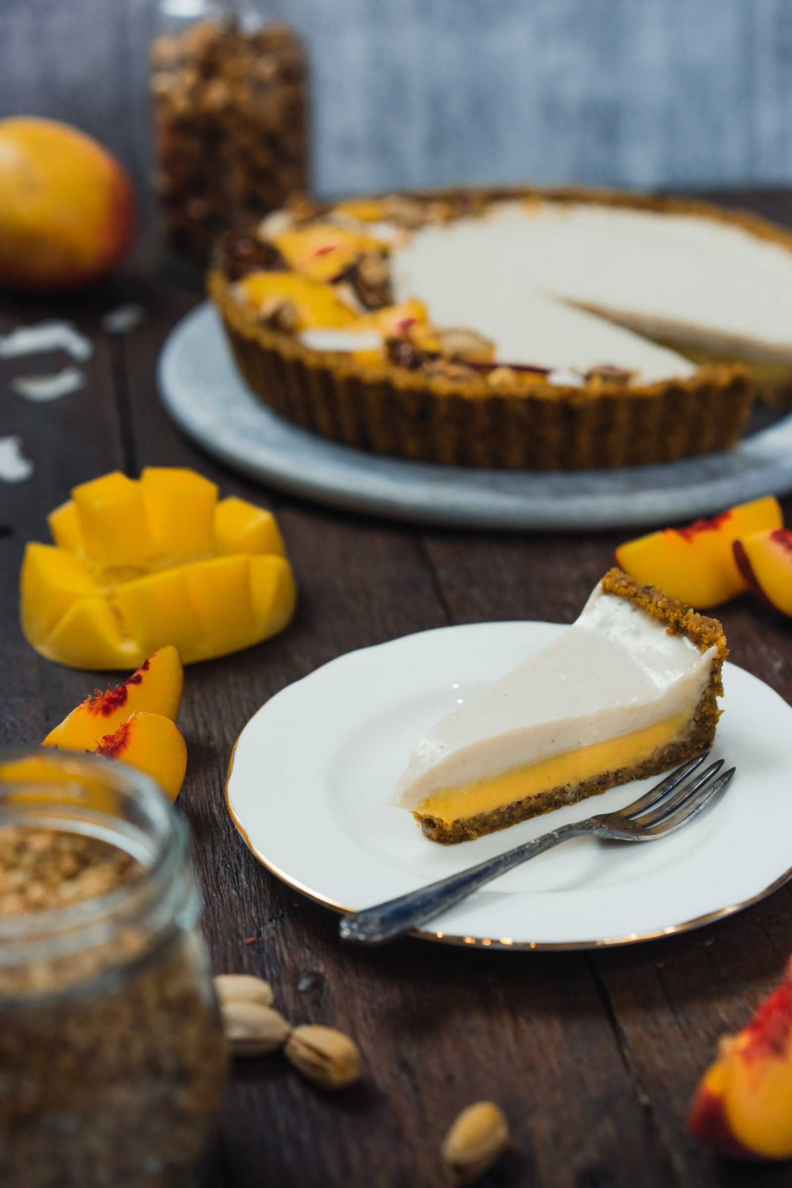 - Press mixture evenly into a greased tart tin and bake at 160℃ for 15 – 20mins. Rotate half way through to ensure even baking. Set aside to cool.